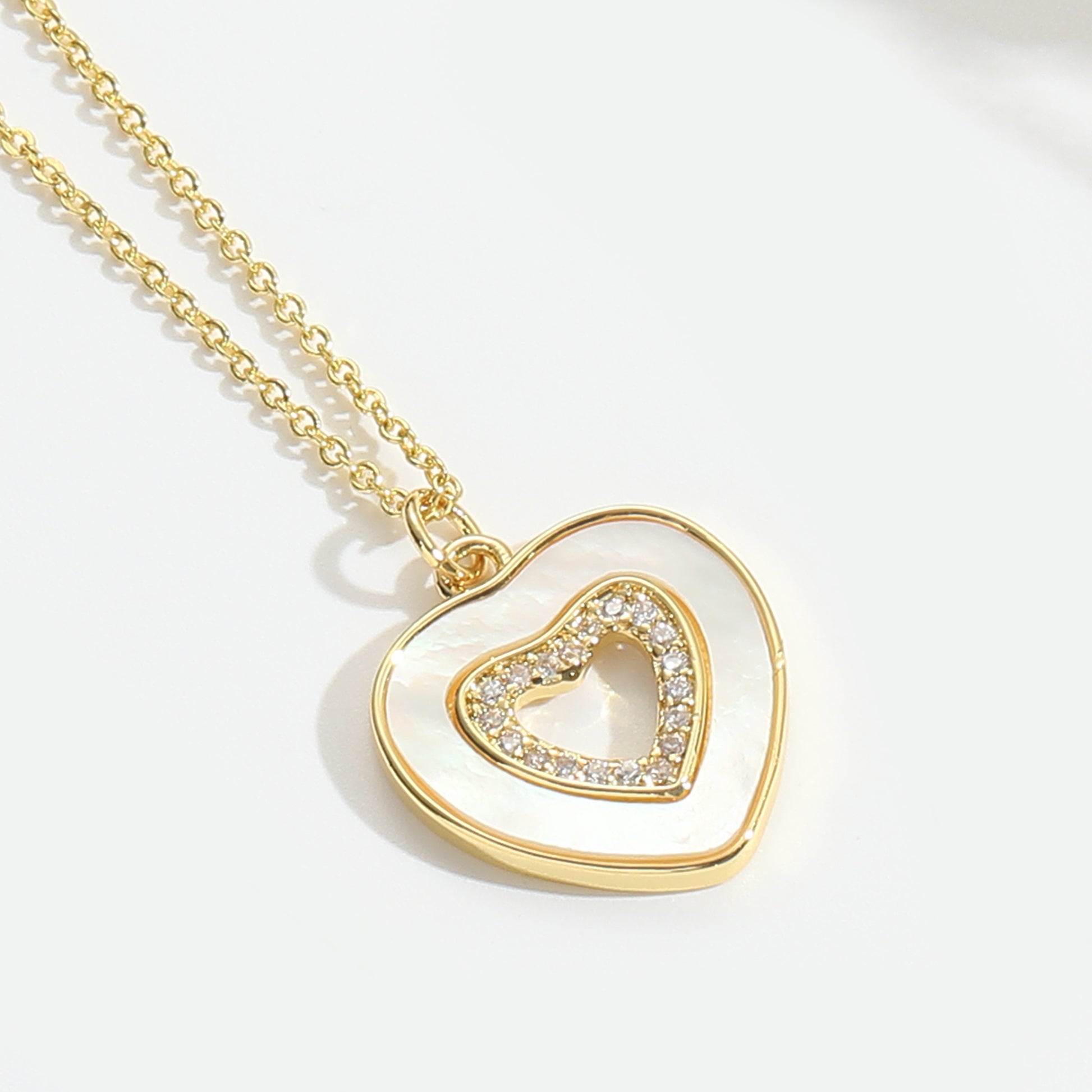 Este collar en tono dorado combina elegancia y durabilidad. Cuenta con un delicado dije de corazón de 2.5 cm que integra circonia y madre perla, realzando su sofisticación. Fabricado en acero inoxidable resistente al agua, ofrece una alta resistencia al desgaste diario. La cadena mide 50 cm, proporcionando un ajuste cómodo y versátil para cualquier ocasión. Una pieza ideal para expresar cariño y estilo con calidad comprobada.